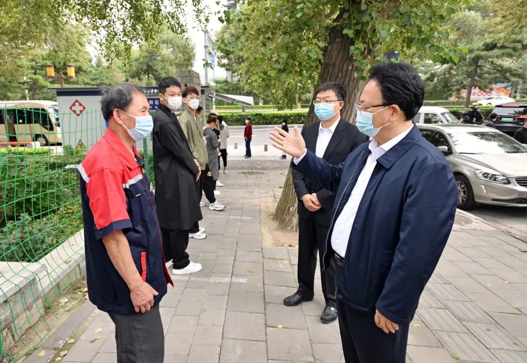 9月5日,省委书记景俊海突击检查长春市疫情防控工作,在牡丹园便民核酸采样点与排队检测的群众深入交流。