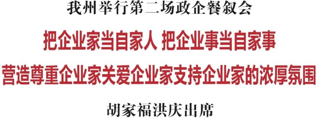 胡家福认真倾听,不时与企业家交流互动,代表州委、州政府对各位企业家扎根延边、建设延边、奉献延边表示诚挚感谢。他指出,近年来,面对复杂严峻的外部环境和新冠疫情的严重冲击,各位企业家带领企业积极应对风险挑战,知重负重、主动作为,应变克难、勇毅前行,保持了良好的发展态势,为稳增长、稳市场、保就业发挥了重要作用、作出了积极贡献。希望各位企业家志存高远、奋发图强,树立创办一流企业的雄心壮志,用心用力搞好创新,踏踏实实办好企业,不断提升企业综合实力,为延边经济发展作出新的更大贡献。州委、州政府将尽心尽力为企业提供更贴心、更优质服务,真正把企业家当自家人,把企业事当自家事,营造尊重企业家、关爱企业家、支持企业家的浓厚氛围。