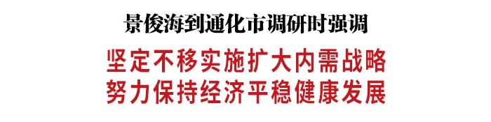 9月21日至22日,省委书记景俊海到通化市调研。他强调,要深入贯彻习近平总书记视察吉林重要讲话重要指示精神,坚持稳字当头、稳中求进,坚定不移实施扩大内需战略,努力保持经济平稳健康发展,以实际行动迎接党的二十大胜利召开。