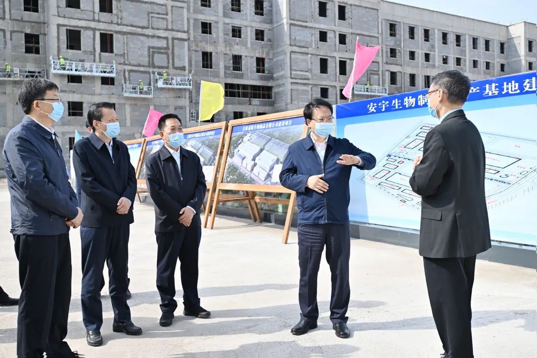 9月22日,省委书记景俊海到通化市调研,在安宇生物制品生产基地项目现场实地察看施工进展情况。