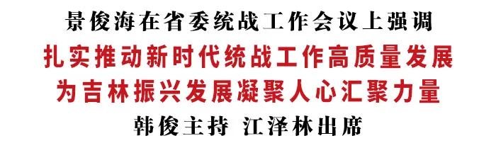 9月27日,省委统战工作会议以视频形式召开。省委书记景俊海出席会议并讲话。他强调,要深入贯彻习近平总书记关于做好新时代党的统一战线工作的重要思想,认真落实中央统战工作会议精神,坚持围绕中心、服务大局,坚持与时俱进、守正创新,扎实推动新时代统战工作高质量发展,为吉林振兴发展凝聚人心、汇聚力量。省委副书记、省长韩俊主持会议。省政协主席江泽林出席。