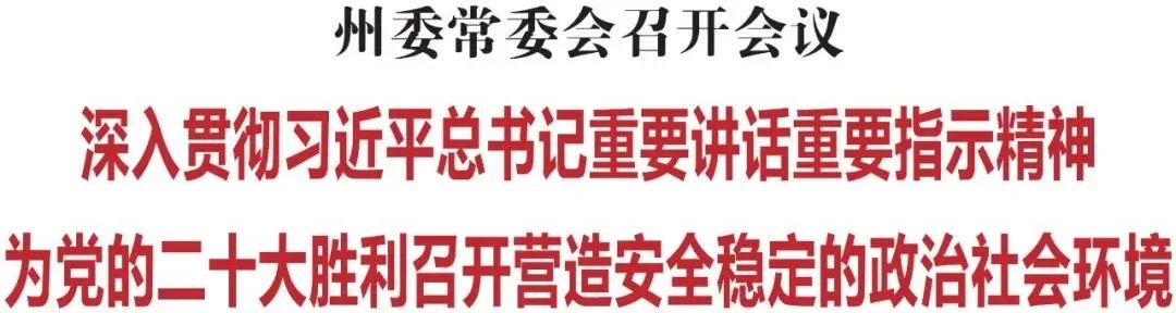 会议指出,即将召开的党的二十大,是在全面建设社会主义现代化国家新征程的关键时刻召开的一次十分重要的大会,事关党和国家事业继往开来,事关中国特色社会主义前途命运,事关中华民族伟大复兴,举国关注、举世瞩目。扎实做好迎接党的二十大安全稳定工作、确保全州社会大局稳定,是各级党委、政府义不容辞的重大政治责任。全州上下要把做好安全稳定工作作为当前头等大事和首要政治任务,切实增强政治敏锐性和政治鉴别力,从严从实从细抓好维护稳定各项工作,坚决防止各类“黑天鹅”、“灰犀牛”事件发生,为党的二十大胜利召开营造安全稳定的政治社会环境。要时刻绷紧对敌斗争这根弦,进一步深化反渗透反颠覆斗争,扎实开展严打暴恐专项行动,持续提升管边控边能力,严防发生影响国家政治安全的重大事件。要严格落实安全生产责任制,强化各领域安全监管,深入开展安全隐患大排查大整治,最大限度消除死角、盲区,严防发生重特大安全生产事故。要聚焦影响社会稳定的风险隐患,进一步加强矛盾纠纷排查化解,加大社会治安整治力度,严防发生影响社会稳定的敏感案事件。要从严落实疫情防控措施,严把外防输入关口,高效有序组织核酸检测,抓好重点场所防控,严防发生疫情规模性反弹。要严格落实网络意识形态责任制和网络安全工作责任制,持续加强网络安全监管,严厉打击网络犯罪,做好网上舆情引导,严防发生重大网络舆情事件。