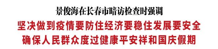 10月2日是国庆假期第二天,省委书记景俊海以“四不两直”方式,在长春市进行暗访检查。他强调,要深入贯彻习近平总书记重要讲话重要指示精神,坚持人民至上、生命至上,始终保持“时时放心不下”的责任感,坚决做到疫情要防住、经济要稳住、发展要安全,确保人民群众度过健康、平安、祥和国庆假期。