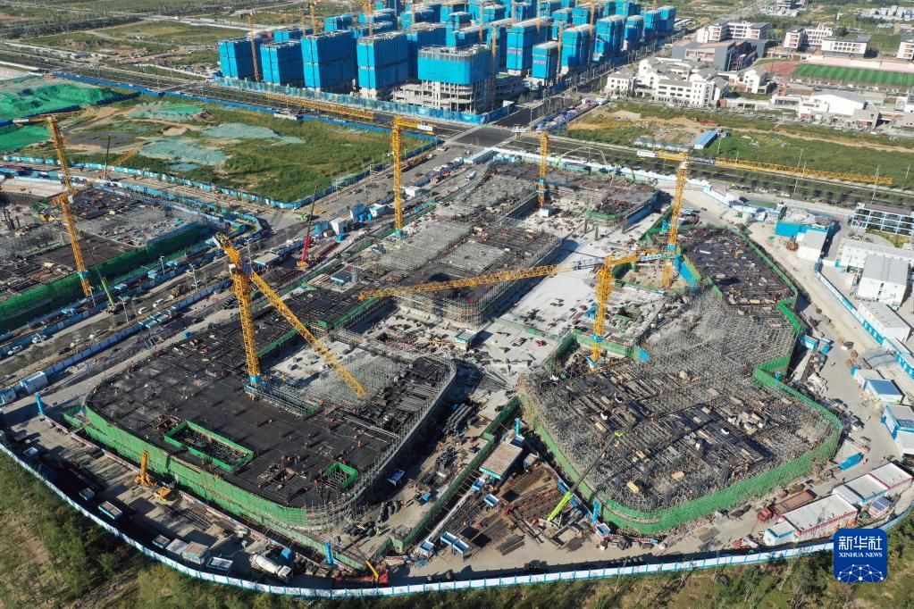 位于雄安新区启动区的中国星网雄安新区总部大楼建设施工现场(2022年9月7日摄,无人机照片)。新华社记者 朱旭东 摄