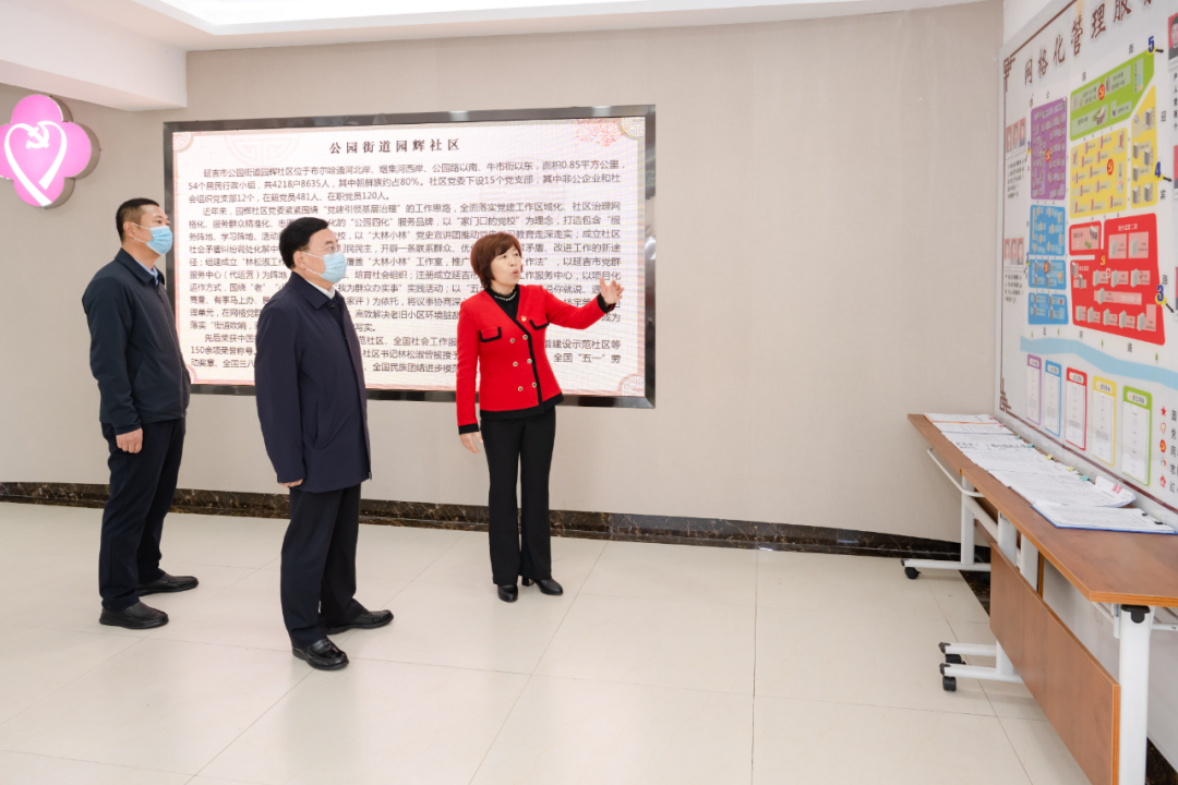 胡家福先后走进延吉市公园街道园辉社区、园建社区,实地察看社区办公大厅,详细了解网格化管理、基层治理及基层党建等工作情况。他强调,要始终坚持以人民为中心的发展思想,积极探索更多有效服务模式,不断强化网格力量配备,切实解决群众身边急事难事,着力增强群众的幸福感、获得感。要坚定不移地把基层党组织建成坚强战斗堡垒,引导社区党员在疫情防控、应急抢险等方面发挥先锋模范作用,让老百姓切身感受到党是风雨来袭时最可靠的主心骨。