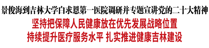 10月31日,省委书记景俊海到吉林大学白求恩第一医院调研并专题宣讲党的二十大精神。他强调,要坚持以习近平新时代中国特色社会主义思想为指引,全面贯彻党的二十大精神,坚持把保障人民健康放在优先发展的战略位置,持续提升医疗服务水平,扎实推进健康吉林建设,为吉林全面振兴奠定坚实基础。