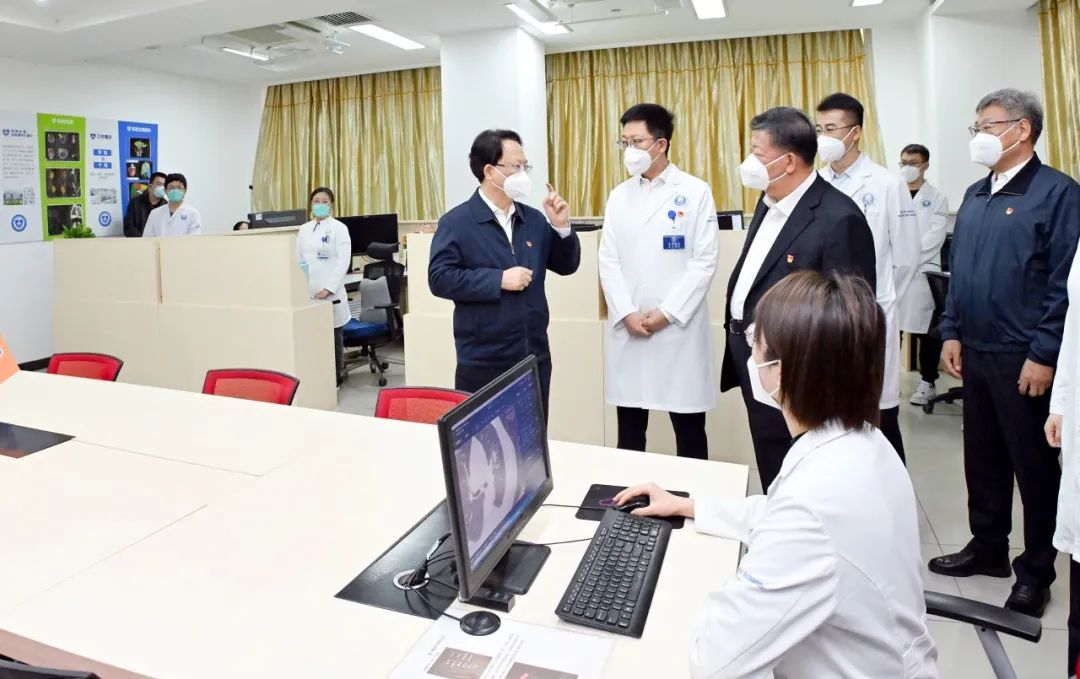10月31日,省委书记景俊海到吉林大学白求恩第一医院调研,在放射线科大数据人工智能中心详细了解诊断辅助系统开发情况。