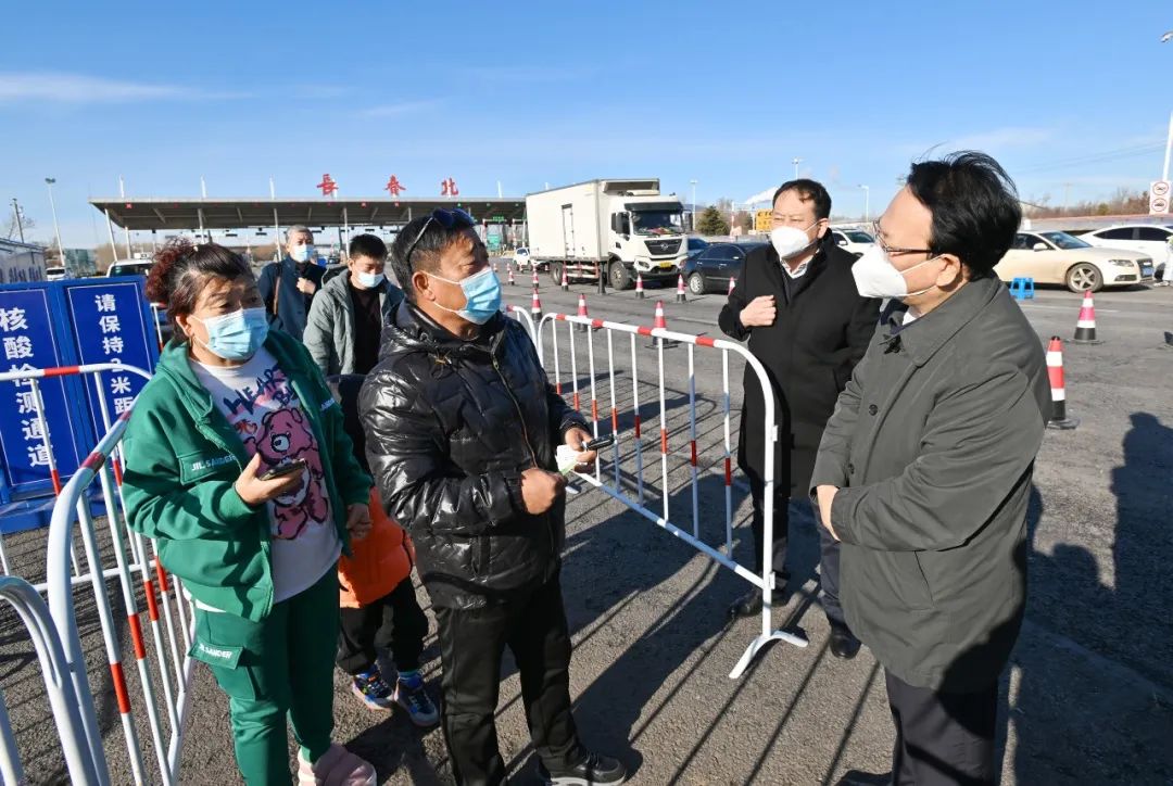 11月20日,省委书记景俊海以“四不两直”方式到长春市农安县暗访检查疫情防控工作,在长春高速北口实地检查“落地检”等措施落实情况。