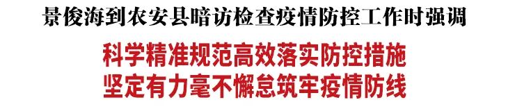 暗访检查中,景俊海指出,各级党委政府必须坚定不移贯彻落实习近平总书记重要讲话重要指示精神,坚定不移坚持人民至上、生命至上,坚定不移落实“外防输入、内防反弹”总策略,坚定不移贯彻“动态清零”总方针,坚决执行第九版防控方案和二十条优化措施,确保防控工作科学完善、精准有效。各级领导干部要深入基层、深入一线,抓细抓实各项防控工作,切实做到守土有责、守土负责、守土尽责。