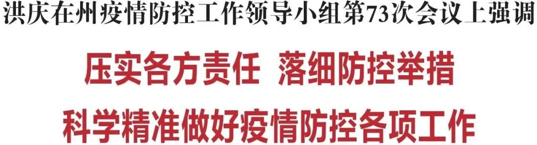 洪庆强调,要准确把握国务院联防联控机制最新要求,科学划分风险区域,有力落实国家和省州疫情防控部署,不断提升防控的科学性、精准性,坚决防止简单化、“层层加码”和“一刀切”,坚决杜绝不作为、乱作为现象发生。