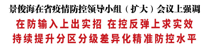 11月21日,省委书记景俊海以视频形式主持召开省疫情防控领导小组(扩大)会议。他强调,要深入贯彻习近平总书记关于高效统筹疫情防控和经济社会发展的重要讲话重要指示精神,进一步压实责任、强化举措、狠抓落实,在防输入上出实招,在控反弹上求实效,持续提升分区分级差异化精准防控水平,坚决做到疫情要防住、经济要稳住、发展要安全。