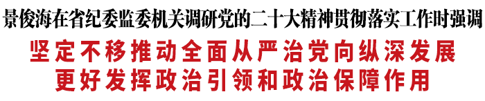 11月23日,省委书记景俊海到省纪委监委机关,围绕贯彻落实党的二十大精神、加强纪检监察工作进行调研督导。他强调,要坚持以习近平新时代中国特色社会主义思想为指引,全面学习把握落实党的二十大精神,按照省委十二届二次全会部署要求,坚定不移推动全面从严治党向纵深发展,更好发挥政治引领和政治保障作用。