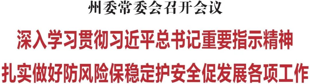 11月25日,省委常委、州委书记胡家福主持召开州委常委会会议,传达学习习近平总书记对河南安阳火灾事故作出的重要指示精神,传达学习省委书记景俊海批示精神;审议《关于进一步加强和改进统计工作 更加有效发挥统计监督职能作用的实施方案》《延边州落实优化生育政策促进人口长期均衡发展任务分工方案》《延边州矿产资源总体规划》。