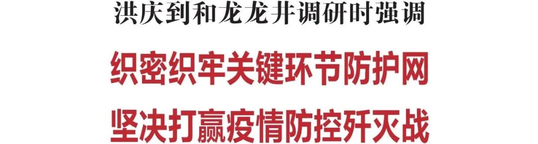 道路卡口是城市的第一道防线,洪庆十分关心卡口防控工作。在和龙高速出口卡点和延龙公路交通卡点,洪庆详细询问了来往车流量、人员登记、核酸检测、轮岗值守等情况。洪庆指出,要时刻绷紧疫情防控这根弦,加大重点人群排查管控力度,全面细致排查入城人员车辆,确保不漏一车、不漏一人。
