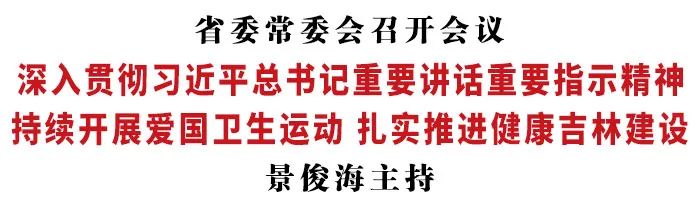 近日,省委书记景俊海主持召开省委常委会会议,传达学习习近平总书记对爱国卫生运动作出的重要指示精神,研究我省贯彻落实举措;审议通过《“数字吉林”建设规划(2.0版)》,审议通过关于召开省十四届人大一次会议、省政协十三届一次会议有关事项。