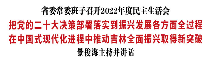 景俊海强调,今年是全面贯彻落实党的二十大精神的开局之年。省委常委班子要以更高政治站位、更强使命担当、更实工作作风,坚决把党的二十大决策部署落实到振兴发展各方面全过程,在中国式现代化进程中推动吉林全面振兴取得新突破。一要始终做政治过硬的明白人,深刻领悟“两个确立”的决定性意义,增强“四个意识”、坚定“四个自信”、做到“两个维护”,把对党绝对忠诚植入灵魂深处、化为行动自觉。二要始终做狠抓落实的领头雁,紧扣党的二十大确定的目标任务,聚焦全面实施“一主六双”高质量发展战略等重点工作,以“时时放心不下”的责任感、积极担当作为的精气神履好职、尽好责。三要始终做为民服务的勤务员,坚定不移站稳人民立场、践行群众路线、增进民生福祉,不断满足人民群众对美好生活的向往。四要始终做管党治党的行动派,严格落实政治责任,强化惩贪治腐,弘扬优良新风,持之以恒推进全面从严治党向纵深发展。五要始终做良好政治生态的引领者,带头廉洁修身、廉洁用权、廉洁齐家,干干净净做事、清清白白做人、堂堂正正做官,永葆共产党人清正廉洁的政治本色。