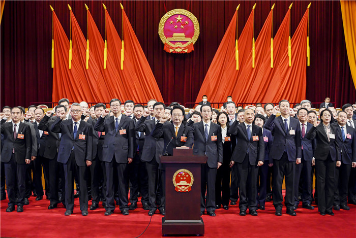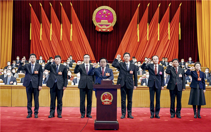 当选的省十四届人大常委会主任、副主任、秘书长、委员进行宪法宣誓。