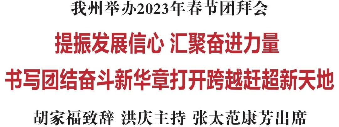 新春佳节即将到来之际,1月19日,州委、州政府在延吉举办2023年春节团拜会,州领导与全州各界代表欢聚一堂、喜迎新春,分享一年来的收获和喜悦,畅谈新一年的美好与憧憬。省委常委、州委书记胡家福出席并致辞,州委副书记、州长洪庆主持,州人大常委会主任张太范、州政协主席康芳出席。