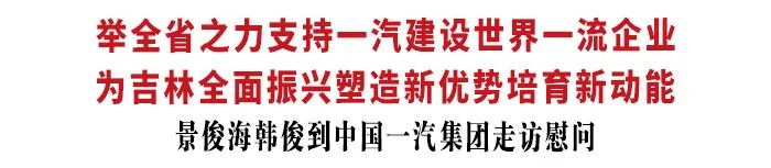 景俊海说,一汽是吉林最有含金量、最具代表性、最值得骄傲的名片。希望一汽牢记习近平总书记殷殷嘱托,牢牢掌控关键核心技术,加快建设世界一流企业,助力吉林全面振兴取得新突破。要当好吉林全面振兴的顶梁柱,持续深化与大众、奥迪、丰田等国际伙伴的战略合作,夯实排产计划,稳步扩大销售,努力实现全年目标。要当好全省转型升级的排头兵,聚焦汽车产业“新四化”发展趋势,进一步完善全球研发布局,集中开展汽车产业核心技术攻关,加快推动奥迪一汽新能源汽车、红旗新能源新工厂等项目建设,强势抢占新能源汽车赛道和未来产业发展制高点。要当好全省产业集聚的风向标,推动资源向吉林汇集、产业向吉林聚集、人才向吉林云集,加快形成门类齐全、健全完善的上下游产业配套体系,形成具有国际竞争力的完整汽车产业链条,进一步提升吉林汽车产业发展整体优势。要当好吉林发展形象的代言人,大力实施民族品牌发展战略,在理念、产品、技术、服务等方面推陈出新,推动品牌高端化、顶级化、新锐化,让“红旗”高高飘扬、“解放”持续领航、“奔腾”澎湃前行,成为吉林高端制造的优秀代表。省委将大力实施汽车产业集群“上台阶”工程,举全省之力支持一汽建设世界一流企业,为一汽提供贴心、暖心、细心服务,为一汽创新发展营造一流环境。长春市要以建设世界一流的国际汽车城为抓手,帮助一汽破解生产经营中遇到的实际问题,推动一汽在新时代民族汽车工业发展中再立新功、再创辉煌。