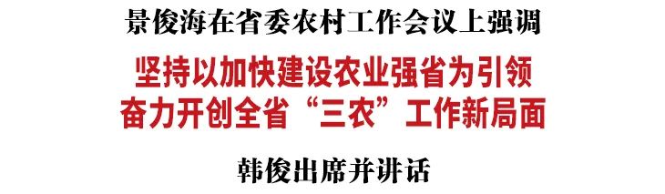 1月29日,省委农村工作会议以视频形式召开,对建设农业强省进行动员部署。省委书记景俊海出席会议并讲话。他强调,要深入贯彻习近平总书记在中央农村工作会议上的重要讲话精神,全面学习把握落实党的二十大精神,坚决扛起“争当农业现代化排头兵”重任,坚持以加快建设农业强省为引领,奋力开创全省“三农”工作新局面。省委副书记、省长韩俊出席会议并讲话。