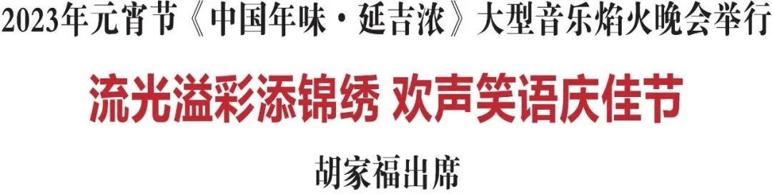 飞天曼妙千般秀,火树银花不夜天。2月5日,农历兔年正月十五,2023年元宵节《中国年味·延吉浓》大型音乐焰火晚会在延吉市举行。省委常委、州委书记胡家福出席晚会,与全州各族人民和广大游客共赏焰火盛宴、共庆元宵佳节。