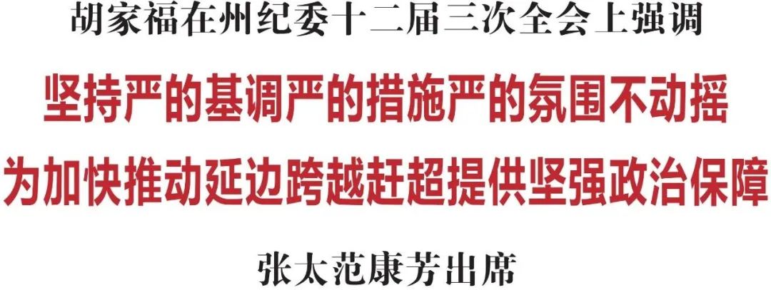 胡家福强调,今年是贯彻落实党的二十大精神的开局之年,也是延边振兴发展迈入新十年的起步之年,推进全面从严治党具有特殊重要的意义。全州各级党组织和纪检监察机关要切实增强新时代新征程上管党治党的政治自觉,坚持严的基调、严的措施、严的氛围不动摇,坚定不移推动全面从严治党向纵深发展。一要强化政治监督,确保党的二十大精神落地生根。坚持不懈用习近平新时代中国特色社会主义思想凝心铸魂,着力推动党的二十大精神、党中央决策部署同部门、行业、领域实际紧密结合,以强有力的政治监督把习近平总书记的谆谆教导、殷殷嘱托转化为真抓实干、务求实效的具体行动,确保各项事业始终沿着习近平总书记指引方向砥砺前进。加强对“一把手”和领导班子监督,坚决纠治有令不行、有章不循、有禁不止,切实打通贯彻执行中的堵点淤点难点。进一步强化党员干部政治能力建设,着力提高政治敏锐性和政治鉴别力,坚决纠治一切偏离“两个维护”的错误言行,坚决杜绝任何形式的“低级红”、“高级黑”。二要坚持“三不腐”一体推进,持续强化正风肃纪反腐。要减存量遏增量同步推进,坚持无禁区、全覆盖、零容忍,坚决查处政治问题和经济问题交织的腐败,深挖彻查行业性、系统性腐败,精准施治新型腐败和隐性腐败,完善政策制定、审批监管、执法司法等关键权力的监督制约,决不让党和人民赋予的权力变为少数人谋利的工具。要纠“四风”树新风同时发力,把中央八项规定精神作为必须长期坚持的铁规矩、硬杠杠,推进作风建设常态化长效化,让人民群众感受到实实在在的变化和成效。要党性党风党纪一体贯通,坚持边查处问题、边完善制度机制,将正反两方面教育和营造良好党内政治生态贯穿其中,发挥扶正祛邪、固本培元的作用,确保党员干部做到自觉尊崇纪律、敬畏纪律、维护纪律、严守纪律。三要健全完善监督体系,着力把制度优势转化为治理效能。要增强监督合力,把党委(党组)全面监督、纪委监委专责监督、党的工作部门职能监督、党的基层组织日常监督、党员民主监督等结合起来、融为一体,推动形成上下联动、左右协同、齐抓共管的监督工作格局。要抓实日常监督,综合运用谈心谈话、检查抽查、受理举报等方式,对党员干部身上的苗头性、倾向性问题,早发现、早提醒、早纠治,避免“小毛病”拖成“大问题”,“微腐败”变成“大祸害”。要深化基层监督,运用大数据平台等科技手段,及时发现和解决侵害群众利益问题,监督保障各项惠民富民、共同富裕政策措施落实,持续纠治教育医疗、就业创业、养老社保等领域腐败和作风问题。要健全专责监督,加强纪委专责监督与其他各类监督主体的工作对接,进一步发挥派驻监督作用,合力构建以纪检监察专责监督为主干、党内监督为主导、各类监督贯通协调的监督体系。四要服务保障中心大局,在加快推动延边跨越赶超上展现新担当新作为。要督促推动责任落实,充分发挥纪检监察机关监督保障执行、促进完善发展作用,紧盯各级各部门履职尽责、党员干部担当作为等方面开展靶向监督,围绕贯彻州委、州政府确定的目标任务和重点工作开展监督检查。要持续深化作风转变,建立健全风腐同查、同审、同析机制,更加突出纠治形式主义、官僚主义问题,对享乐奢靡、顶风违纪的露头就打。要激励干部担当作为,坚持严管厚爱结合、激励约束并重,打出容错纠错、澄清正名、严查诬告陷害“组合拳”,做到围绕中心不偏移、服务全局不犹豫、促进发展不动摇。五要加强纪检监察干部队伍建设,以铁的纪律打造忠诚干净担当的铁军。要强化政治能力,从内心深处增强政治认同、思想认同、理论认同、情感认同,切实做到忠诚核心、拥戴核心、紧跟核心、捍卫核心。要强化专业素养,加大纪检监察干部的培训力度,增强法治意识、程序意识、证据意识,持续推进纪检监察工作规范化、法治化、正规化建设。要强化自我监督,规范执纪执法权力运行,始终坚持“刀刃向内”,坚决防治“灯下黑”,为纪检监察干部架起“高压线”、建好“防火墙”。