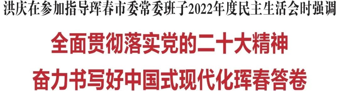 为落实中央和省委部署,按照州委安排,2月14日,州委副书记、州长洪庆参加指导珲春市委常委班子2022年度民主生活会。他强调,要深入学习贯彻习近平新时代中国特色社会主义思想和党的二十大精神,务实创新、攻坚克难,奋力书写好中国式现代化的珲春答卷。