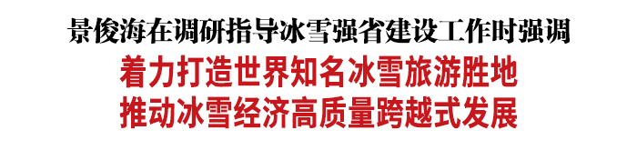 调研中,景俊海强调,大力发展冰雪经济、加快建设冰雪强省,对于拉动消费增长、培育发展动能、促进经济转型具有重要意义。各级党委政府要进一步提高站位、压实责任、强化担当,扎实做好冰雪经济发展各项工作,为实现冰雪强省建设目标奠定坚实基础。要进一步做强做优做大冰雪产业,突出抓好冰雪旅游、冰雪运动、冰雪文化、冰雪装备4个核心领域,着力构建“4+X”冰雪全产业链体系,向着打造冰雪和避暑休闲生态旅游万亿级大产业迈进。要进一步培育新业态新模式,紧盯吃住行游购娱全链条,全方位、多层次做好“冰雪+”文章,谋划四季旅游项目,举办更多文体活动,有效聚人气、增活力、促消费。要进一步塑造吉林冰雪品牌,丰富冰雪文化内涵,加大营销推广力度,不断增强市场竞争力、提升冰雪附加值。