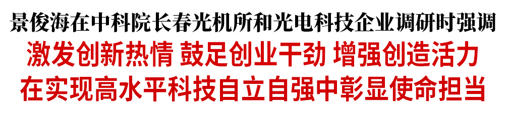 景俊海强调,一直以来,中科院长春光机所扎根吉林、服务吉林,持续推动院地合作落地落实,为吉林振兴发展提供了有力支撑。希望长春光机所和光电科技企业充分发挥优势,推动更多科研成果转化为现实生产力,持续为吉林经济增长、结构调整贡献力量。一要聚焦科技自立自强,在源头供给、平台建设上下功夫,努力攻克更多“卡脖子”难题,推动原始创新和技术集成实现更大突破。二要聚焦创新赋能发展,瞄准“六新产业”发展和“四新设施”建设主攻方向,紧盯建链延链强链补链需要,持续深化院地、院校、院企合作,推动新技术转化成新产业、新经济、新业态。三要聚焦人才引育管用,千方百计搭建事业平台,引进一批产业急需、省内紧缺的高层次专业人才,着力构建育人体系,让各类人才有高成长空间、高收入岗位、高品质生活,助力吉林打造全国重要人才中心和创新高地。四要聚焦体制机制改革,加快建立以创新价值、能力、贡献为导向的人才评价体系,完善成果利益分配机制,支持企业深度参与创新过程,形成产学研用一体化的创新生态。省委、省政府将一如既往支持中科院长春光机所和光电科技企业发展,进一步完善政策服务,关爱科研队伍,为大家创新创业创造营造良好环境。