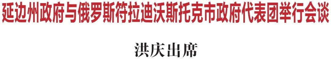 洪庆代表延边州委、州政府,对代表团一行的到来表示热烈欢迎。他指出,延边现有对俄进出口企业150家,在俄投资企业40家,珲马铁路运营稳定,“长珲欧”班列、“海洋班列”实现常态化运行,双方贸易合作不断取得新进展。这些成果为扩大双方务实合作奠定了坚实基础。希望双方进一步加深各领域的交流合作,持续完善口岸基础设施建设,加快提升客货通关效率,共同推动友好合作取得丰硕成果。