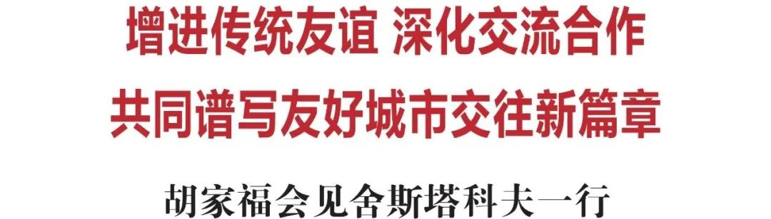 胡家福代表州委、州政府向舍斯塔科夫一行的到来表示欢迎,向符拉迪沃斯托克市以及滨海边疆区长期以来支持延边发展的社会各界人士表示感谢。他说,延边州与俄罗斯滨海边疆区山水相连、陆海相通,双方历来有着频繁的经贸往来和交流合作。符拉迪沃斯托克市是俄罗斯滨海边疆区的首府,也是俄罗斯远东地区最大的城市,更是享誉世界的旅游城市和港口城市。长期以来,在两国元首的战略指引下,延边州与符拉迪沃斯托克市在互联互通、友好交往、经贸合作、跨境旅游等方面取得了丰硕成果。延边州是“一带一路”向北开放的战略支点,是长吉图先导区的“前沿”和“窗口”,扩大对外开放层次、深化互联互通合作、巩固中俄良好关系,是我州一直致力发展的方向。希望双方互鉴发展经验,共享发展机遇,进一步强化沟通对接,健全完善定期会晤机制,持续加强两地宣传推介,充分利用珲春跨境电商产业园、延吉空港区等重大开放平台,携手提升通关便利化水平,不断扩大在汽车、能源、木材、海产品等方面贸易合作规模,积极推动跨境旅游回暖复苏,大力拓展文化、体育、青少年等领域交流,增进两地人民相互了解和友谊,共同谱写友好城市交往新篇章。