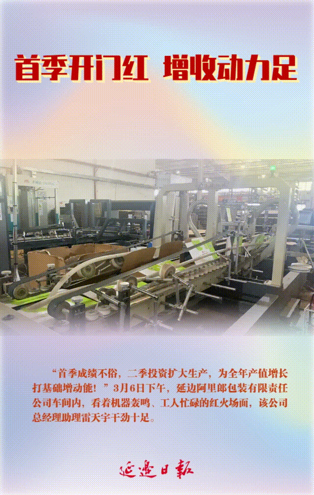 “首季成绩不俗,二季扩大生产,为全年产值增长打基础增动能!”在延边阿里郎包装有限责任公司车间内,看着机器高速运行、工人有序忙碌的红火场面,该公司总经理助理雷天宇信心十足。作为主要给本地厂家做包装产品的配套企业,“阿里郎”的生意好,间接展示了链条上游企业的需求多、产量高,因此,该公司审时度势积极谋划扩大再生产。