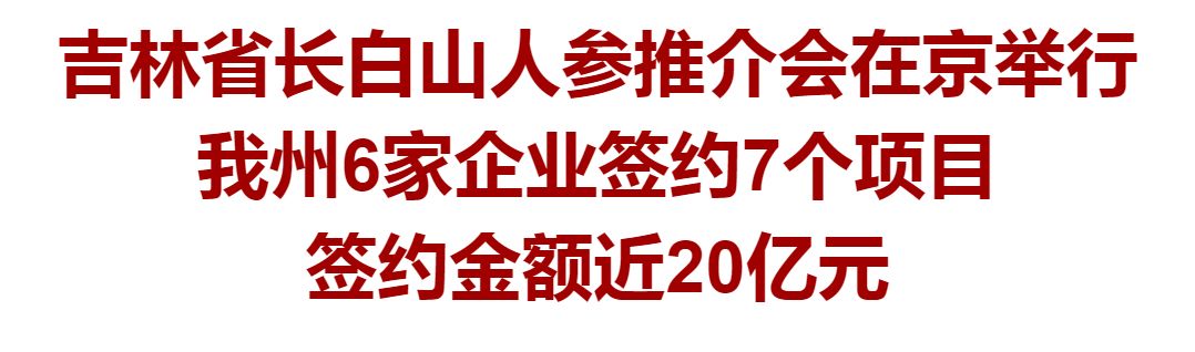 推介会上,与会人员共同观看了长白山人参专题宣传片,州委副书记冯涛推介了我州人参产业发展情况。签约仪式上,我州共有6家企业参与签约7个项目,交易额近20亿元。