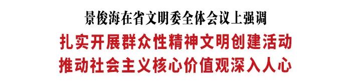 景俊海要求,各级党委要把精神文明建设摆上重要位置、纳入工作全局,党委主要负责同志要亲自协调解决精神文明建设中的重大问题,各级文明委要履行好规划、指导、协调、推动精神文明建设职责,文明委各成员单位要根据分工抓好重点项目落实,省文明办要运用“五化”闭环工作法严格督查问效,切实形成推动工作强大合力。