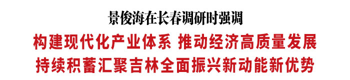 调研中,景俊海强调,推动吉林全面振兴取得新突破,必须完整准确全面贯彻新发展理念,深入实施“一主六双”高质量发展战略,大力发展“六新产业”、加快建设“四新设施”,畅通高质量发展经济循环,推动经济实现质的有效提升和量的合理增长。要着力实施“百千万”产业培育工程和“十百千万”企业培育工程,持续建强产业链、优化供应链、提升价值链。要着力推动重大项目建设,进一步扩大有效投资,为高质量发展攒足后劲。要着力实施人才强省战略,培养、回归、引进、留住、用好高素质人才,推动创新型省份建设取得扎实成效。