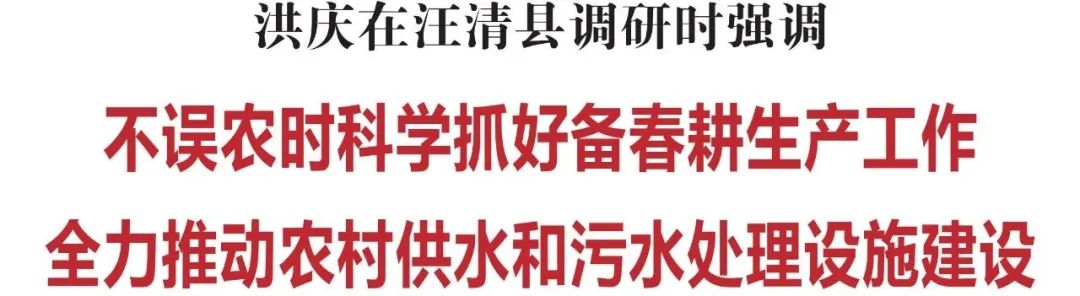 3月30日,为贯彻落实党中央在全党大兴调查研究的决策部署,州委副书记、州长洪庆就项目建设、春季防火、备春耕、秸秆离田、农村供水和污水设施建设等工作到汪清县调研。