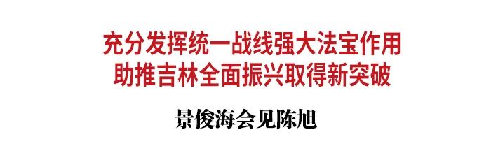 景俊海向陈旭一行到吉林调研表示热烈欢迎,向中央统战部和国侨办长期以来对吉林振兴发展的大力支持表示衷心感谢。在简要介绍吉林经济社会发展情况后,景俊海说,吉林省委高度重视统战工作。在习近平总书记关于做好新时代党的统一战线工作的重要思想指引下,在中央统战部的关心指导下,我们坚持把统战工作摆在全局工作的重要位置来抓,进一步完善大统战格局,持续促进吉林多党合作事业高质量发展,着力创新海外统战工作和侨务工作,推动党对统战工作的领导更加有力、共同思想政治基础更加坚实、服务高质量发展成效更加扎实、统战领域和谐稳定局面更加巩固。希望中央统战部和国侨办一如既往关心支持吉林,加大工作指导力度,充分发挥统一战线凝聚人心、汇聚力量的强大法宝作用,帮助吉林在海内外牵线搭桥、招才引智,让更多一流企业、重大项目、优秀人才汇聚吉林,助推吉林全面振兴取得新突破。