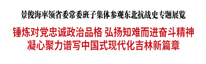 东北抗战史专题展览由“艰苦卓绝十四年——东北人民抗战史实陈列”“侵华日军细菌战罪证陈列”“天地英雄气 千秋尚凛然——缅怀东北抗战英烈和英雄群体陈列”三个部分组成,通过影片、实物、文献等形式,深刻揭露了日本法西斯侵占东北的野蛮罪行,生动再现了东北各界民众在中国共产党领导下英勇抗战的历史画卷。省委常委同志不时驻足观看,共同追忆抗联英烈浴血奋战的峥嵘岁月。景俊海指出,以杨靖宇同志为代表的东北抗联将士,在艰苦卓绝的条件下与日本侵略者周旋斗争,迎难而上、视死如归,充分体现了东北抗联将士忠诚于党的坚定信念、勇赴国难的民族大义、血战到底的英雄气概。我们要大力弘扬东北抗联精神,进一步坚定理想信念、提升思想境界、加强党性锻炼,在工作实践中增强能力本领,坚决扛起“新担当、新突破、新作为”重大责任使命,努力在全面建设社会主义现代化新吉林中建功立业。