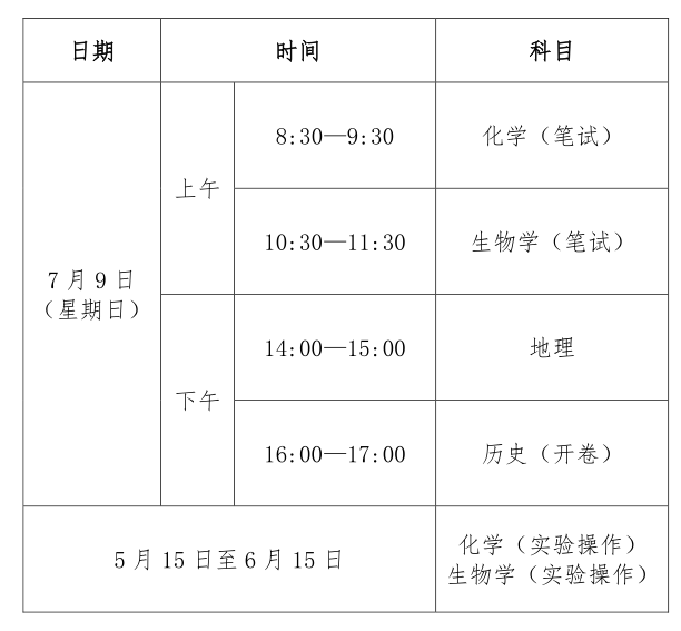 学业水平合格性考试日程表