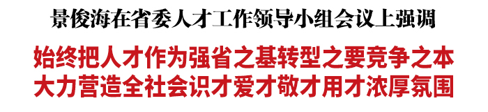4月27日,省委书记、省委人才工作领导小组组长景俊海主持召开省委人才工作领导小组会议。他强调,要深入贯彻习近平总书记关于做好新时代人才工作的重要思想,全面实施人才强省战略,始终把人才作为强省之基、转型之要、竞争之本,持续深化人才发展体制机制改革,大力营造全社会识才爱才敬才用才浓厚氛围,推动我省人才工作迈上新台阶。