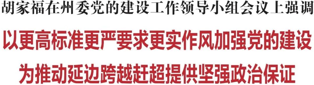 会议强调,各级党组织要以学习贯彻习近平新时代中国特色社会主义思想主题教育为重要抓手,以抓好省委巡视反馈问题整改为重要契机,坚决扛起管党治党政治责任,不断完善坚持和加强党的全面领导的制度体系,持续释放全面从严治党永远在路上的强烈信号,推动全州党的建设不断向纵深发展,为推动跨越赶超提供坚强政治保证。一要坚定不移加强政治建设,深入实施“一把手”政治能力提升计划,探索党的建设与经济社会发展同谋划、同部署、同落实、同考核的融合党建新路径,推动党建工作与打造十大产业集群、创建全国铸牢中华民族共同体意识示范州等中心工作互促共赢,切实把党的政治优势转化为发展优势。二要坚持不懈抓好理论武装,严格落实党委(党组)会议“第一议题”政治学习制度,深入实施习近平新时代中国特色社会主义思想教育培训计划,扎实推进党员干部教育培训“铸魂赋能”工程,开展以产业发展、招商引资等内容为重点的系列专题培训,不断提高党员干部推动跨越赶超、维护安全稳定、促进民生改善、增进民族团结的能力水平。三要着力加强干部队伍建设,落实新时代好干部标准,树立选人用人正确导向,完善干部考核评价体系,建好高素质专业化干部队伍,分类实施“金达莱英才计划”、产业人才引进计划、人才支边行动,鼓励支持各方面人才向边境一线集聚,为延边振兴发展提供坚实人才支撑。四要持续深化基层组织建设,深入推进抓党建促乡村振兴、党建引领城乡基层治理等工作,加大省委基层治理专项巡视反馈问题整改力度,着力提高机关、国企、事业单位党建工作质效,常态长效开展“我为群众办实事”实践活动,切实打通联系服务群众“最后一公里”。五要持之以恒正风肃纪反腐,时刻保持“两个永远在路上”的清醒和坚定,坚持严的基调、严的措施、严的氛围不动摇,坚持纠“四风”树新风同时发力,坚持党性党风党纪一体贯通,一体推进不敢腐、不能腐、不想腐,持续纠治“四风”特别是形式主义、官僚主义,大力培树“严深细实”优良新风,营造干部清正、政府清廉、社会清朗的良好政治生态。
