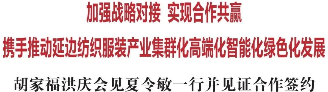 胡家福代表州委、州政府对夏令敏一行表示欢迎。他说,中国纺织工业联合会是全国性的纺织行业组织,自成立以来始终秉承服务纺织、造福民生的宗旨,聚精会神引领行业、服务企业,在提升纺织服装行业综合竞争力中做了大量卓有成效的工作,获得了行业内外的普遍赞誉。纺织服装产业是延边的传统优势产业,具有悠久的历史和良好的基础。当前,我州正深入贯彻党的二十大和习近平总书记视察吉林视察延边重要讲话重要指示精神,立足资源禀赋和产业基础,坚持培育和引进协同发力,主动承接沿海发达地区服装产业梯度转移,积极引进关联性大、带动性强的自主品牌企业,大力推动现有服装生产企业创新发展,加快打造集服装研发设计、生产销售于一体的产业链条,着力塑造振兴发展新动能新优势。中国纺织工业联合会拥有丰富的行业经验,与我州产业发展需求十分契合,双方合作空间广阔、潜力巨大。希望以此次签约为新起点,充分发挥各自优势,加快推进协议落地、项目见效,携手推动延边纺织服装产业集群化、高端化、智能化、绿色化发展。延边州委、州政府将始终以企业发展需求为导向、以企业家满意为标准,提供最实惠的政策、最亲清的环境、最优质的服务,让企业在延边蓬勃发展、不断壮大,努力实现互惠互利、共赢发展。