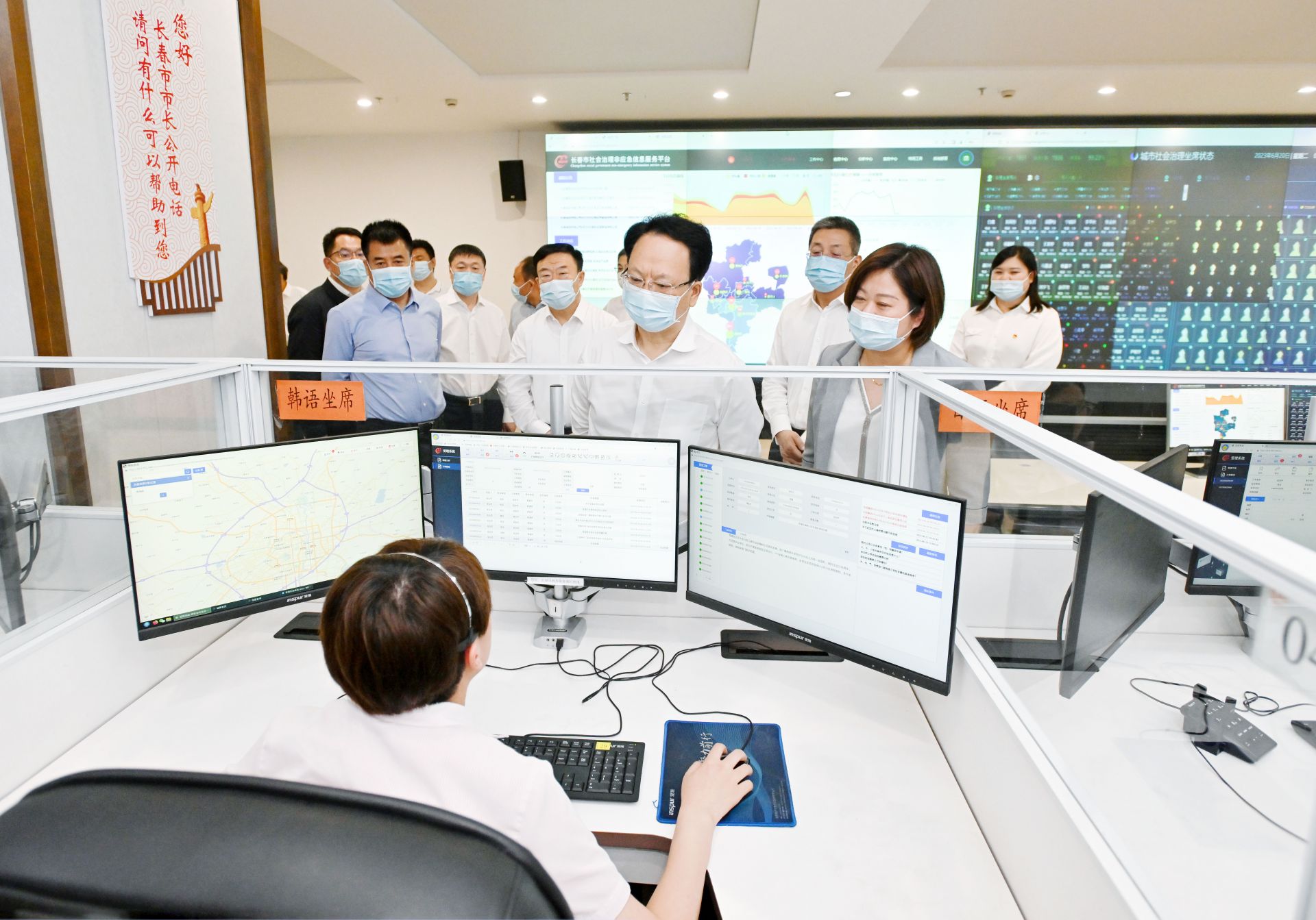 6月20日,省委书记景俊海到长春调研指导主题教育工作,在长春市市长公开电话办公室受话大厅详细了解12345政务服务便民热线工作情况。