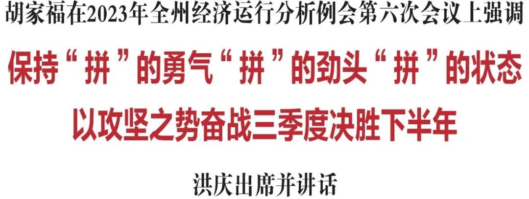 胡家福指出,今年以来,全州上下聚焦加快推动跨越赶超目标,坚持把拼经济、谋发展作为工作主旋律,以饱满热情、充足干劲投身经济建设主战场,坚定不移抓项目、稳投资、促消费,全州工业生产增势平稳、消费需求持续释放、招商引资氛围日益浓厚,经济运行呈现持续恢复、总体平稳的态势。但必须清醒地看到,当前经济运行中固定资产投资下滑、规上工业产值增幅收窄、外贸增速有所回落等问题突出,必须坚定信心、咬定目标,奋发进取、克难而进,全力以赴锻长板、补短板、筑优势,持续巩固扩大经济回升向好势头。
