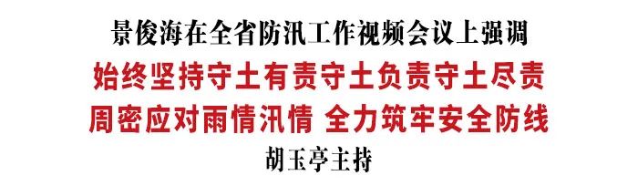 7月5日,省委书记景俊海出席全省防汛工作视频会议并讲话,省委副书记、省长胡玉亭主持会议。