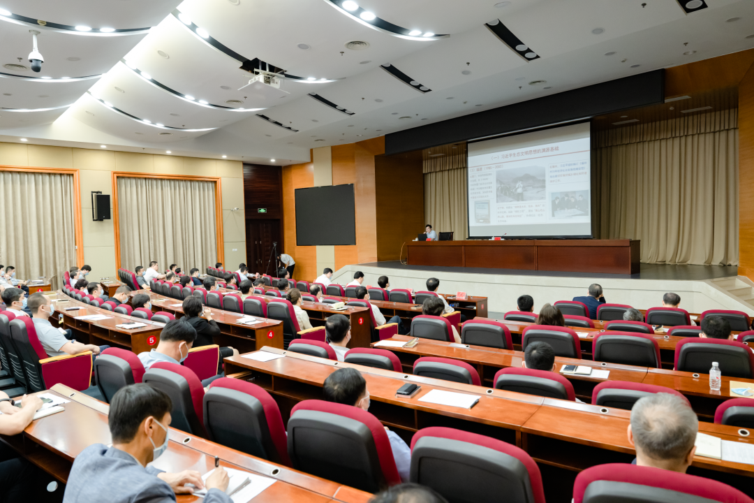 会上,生态环境部环境与经济政策研究中心副主任张强,以“坚持以习近平生态文明思想为指导,建设人与自然和谐共生的美丽中国”为主题,分别从“习近平生态文明思想的科学体系、我国生态环境保护发生历史性转折性全局性变化、建设人与自然和谐共生的美丽中国”三个方面作了专题辅导。授课内容视野开阔、内容丰富,既有深入的理论思考,又有丰富的实践提炼,具有很强的指导性和启发性。