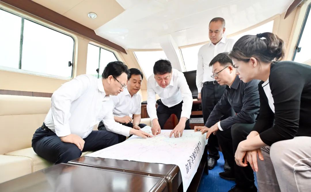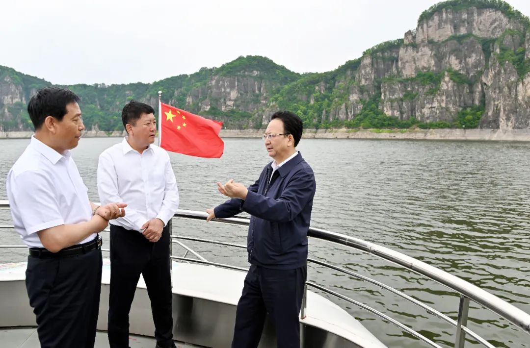 7月10日至11日,省委书记景俊海到白山督导主题教育并调研,乘船察看松花江沿线江岸水面,仔细询问旅游航线开发和安全管理等情况。