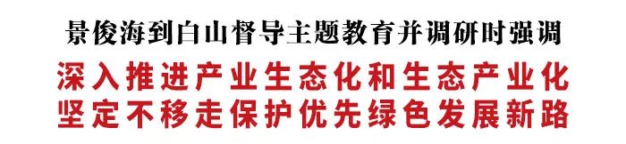 7月10日至11日,省委书记景俊海到白山督导主题教育并调研。他强调,要坚持以习近平新时代中国特色社会主义思想为指引,扎实建设践行“两山”理念试验区,深入推进产业生态化和生态产业化,坚定不移走保护优先、绿色发展新路,为加快生态强省建设、推动吉林全面振兴贡献更大力量。