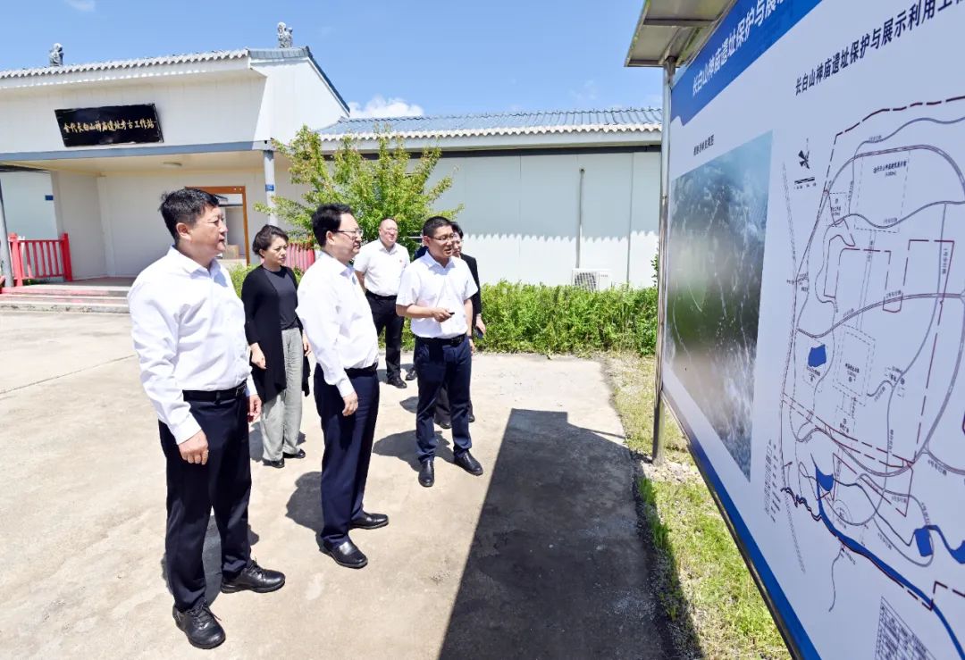 7月12日,省委书记景俊海到长白山保护开发区督导主题教育并调研,在池北区长白山神庙遗址考古工作站详细了解遗址保护和展示利用工程规划建设情况。