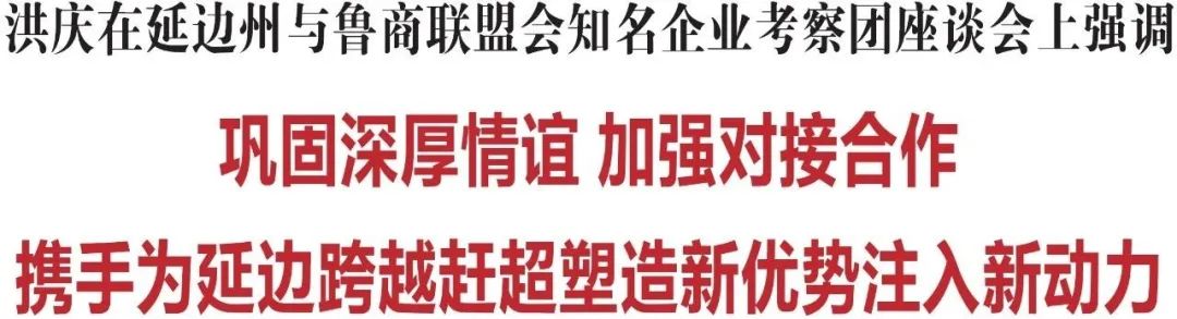 洪庆指出,这次全国工商联常委、广东圣丰集团有限公司董事长江南率队到延边开展商务考察,州委、州政府高度重视,省委常委、州委书记胡家福专门会见代表团一行,希望各位企业家同延边一道共享新机遇、共谋新发展、共创新未来。此次鲁商联盟会知名企业来我州开展商务考察和项目对接,充分体现了鲁商联盟会与延边的深厚情谊,以及对延边发展的高度关注和支持。此次来延的考察团层次高、对接准,都是有影响、有声望、有远见的企业家,有助于帮助延边补齐在品牌、市场、资金和管理技术等方面的产业发展短板。当前,延边州正在深入贯彻落实党的二十大精神,忠实践行习近平总书记视察吉林视察延边重要讲话重要指示精神,全力以赴谋发展、拼经济、惠民生、保稳定,努力为跨越赶超塑造新优势、注入新动力。希望鲁商联盟会和各位企业家朋友能够更加深入了解延边,重点围绕“十大产业集群”投资延边,把鲁商的先进理念带到延边,把事业版图拓展到延边,让鲁商精神扎根延边、用鲁商力量助力延边。希望双方能够共建长效对接合作机制,研究制定延边与鲁商联盟会全方面合作的对接框架,全面梳理招商项目清单,精准做好项目推介,特别是积极设计各类展会、年会、论坛,为各位企业家搭建更多了解延边的平台。
